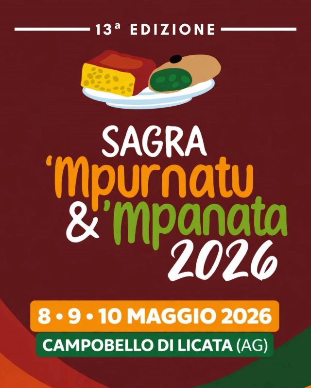 La XIII edizione della Sagra di lu ‘Mpurnatu e Mpanata" a Campobello di Licata (AG) si terrà dall'8 al 10 maggio 2026 in Piazza XX Settembre: cuore di Campobello di Licata (AG) che per l'occasione si trasforma in un palcoscenico di profumi e tradizioni. L'evento celebra i piatti tipici locali: lu "Mpurnatu" e la "Mpanata".